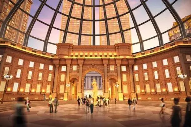 这个巨无霸综合体主要包含创新奥特莱斯、世界级奢华酒店、新形态主题型商业街区、超5A甲级总部写字楼、亚洲最大剧院群五大业态,其中商业总面积高达42万㎡!