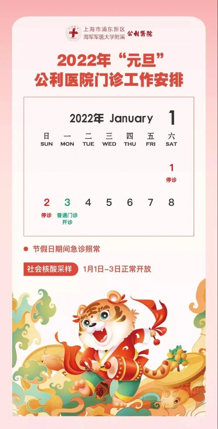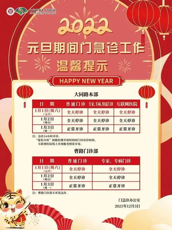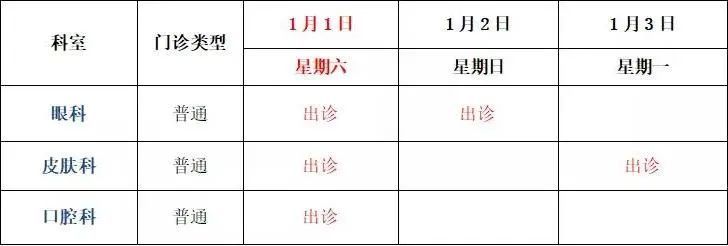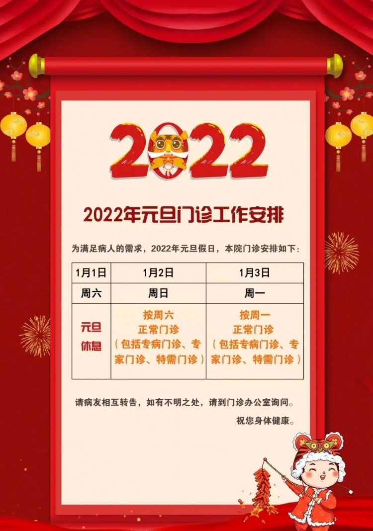 2、1月2日(周日)、1月3日(周一)照常开诊。