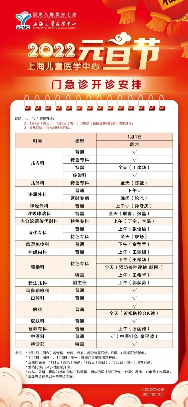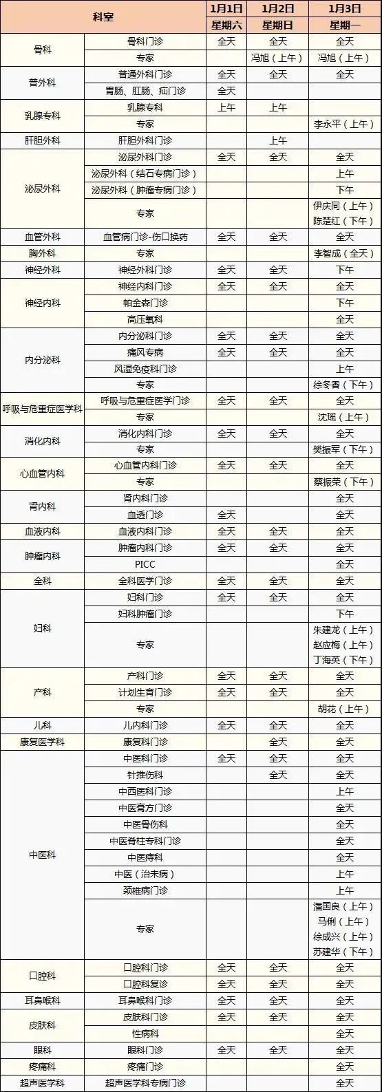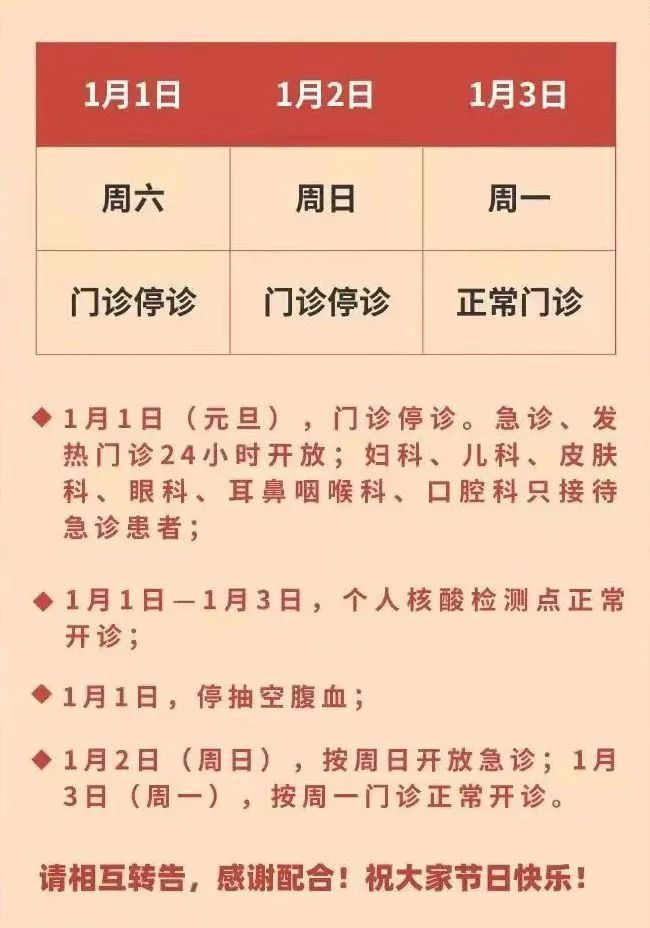 2、1月2日(周日)按周日开放普通门诊,无专家、专病门诊。