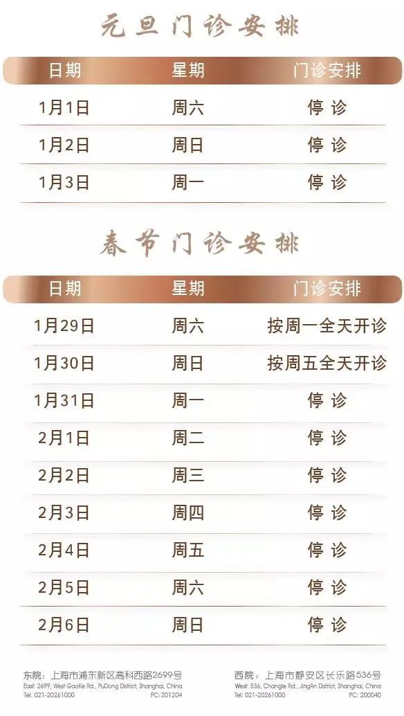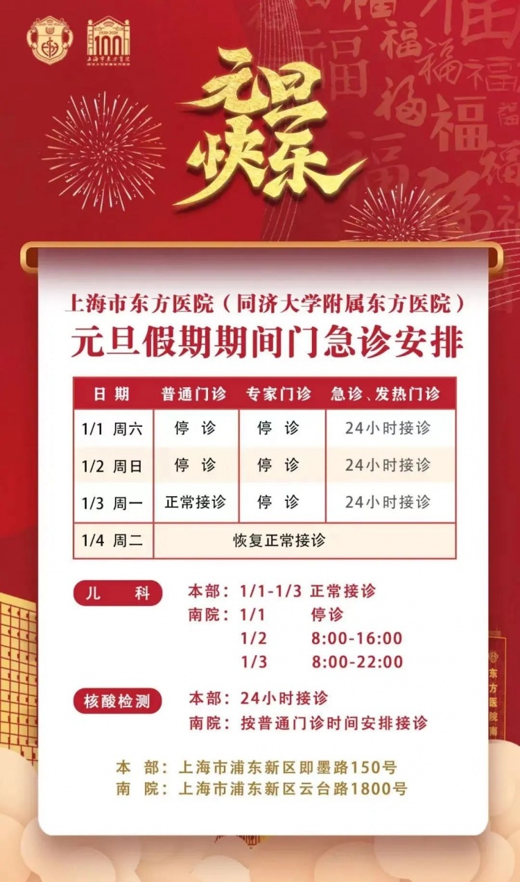 元旦小长假要来啦 !在此,观察君一如既往地为大家盘点了浦东区域内各大医院元旦期间门急诊安排,如有就医需求,方便大家就近选择!