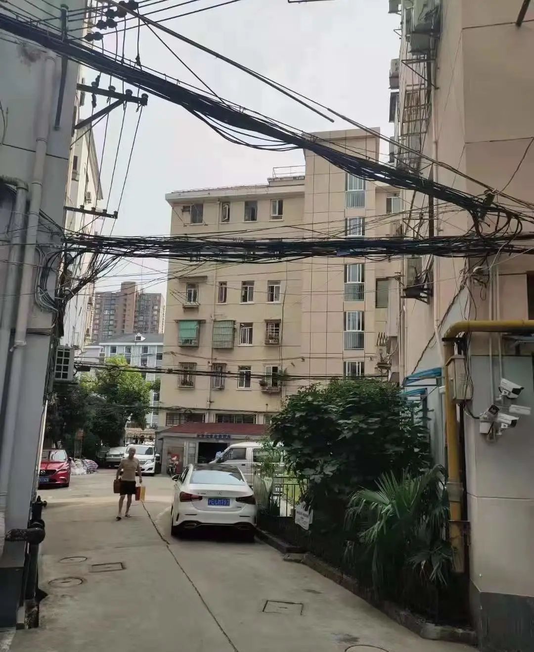 “侬看,阿拉的天都‘亮’了。”13号楼的马师傅跟记者聊起了小区的架空线。之前,小区里各种私拉乱接电线,像蜘蛛网一样,乱成一团挂在头顶上,每到刮风、下雨的时候,大家都存有一丝担忧,“我们每天走来走去,危险啊!”
