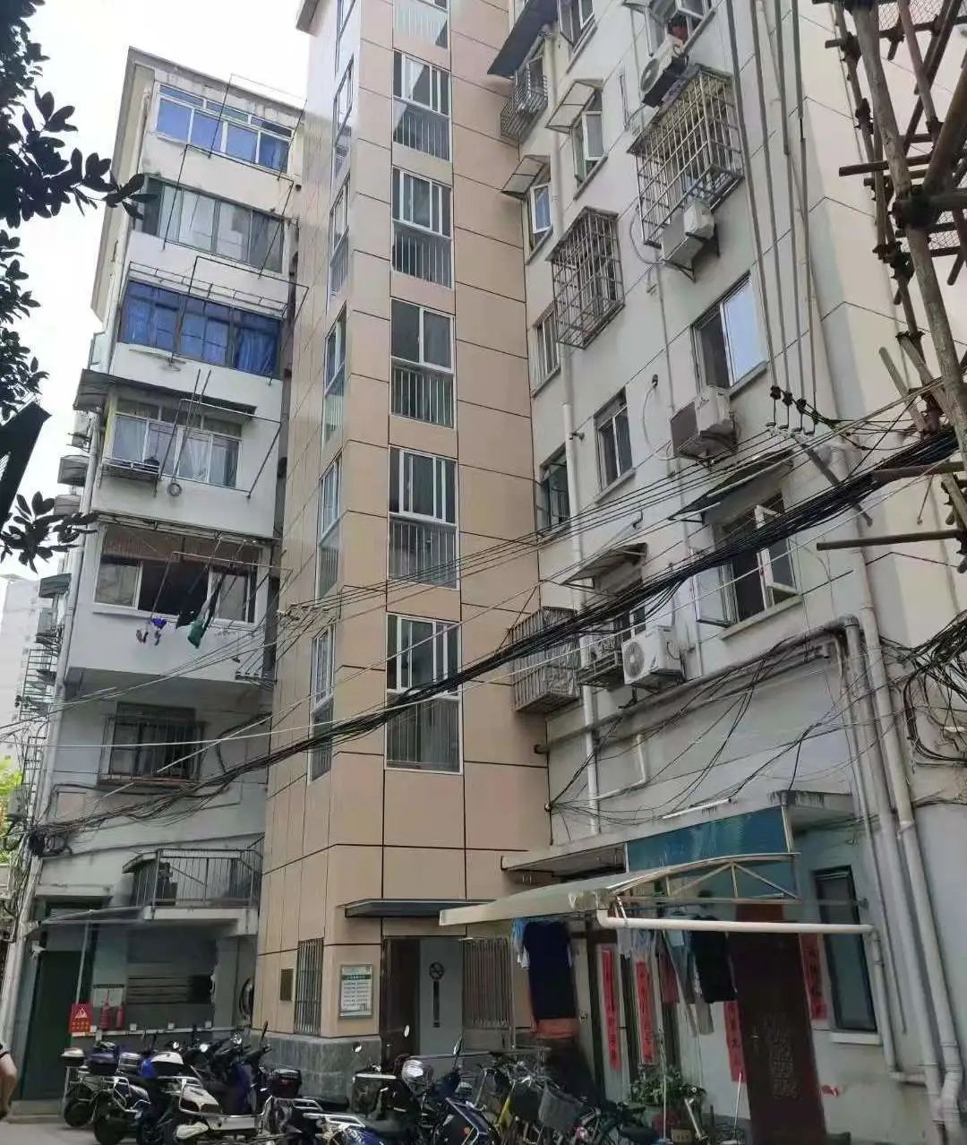 此次小区综合修缮,架空线入地,就是其中重要的一个项目。然而,位于中华路与复兴东路交界处的中复小区,想要完全架空线入地,谈何容易。