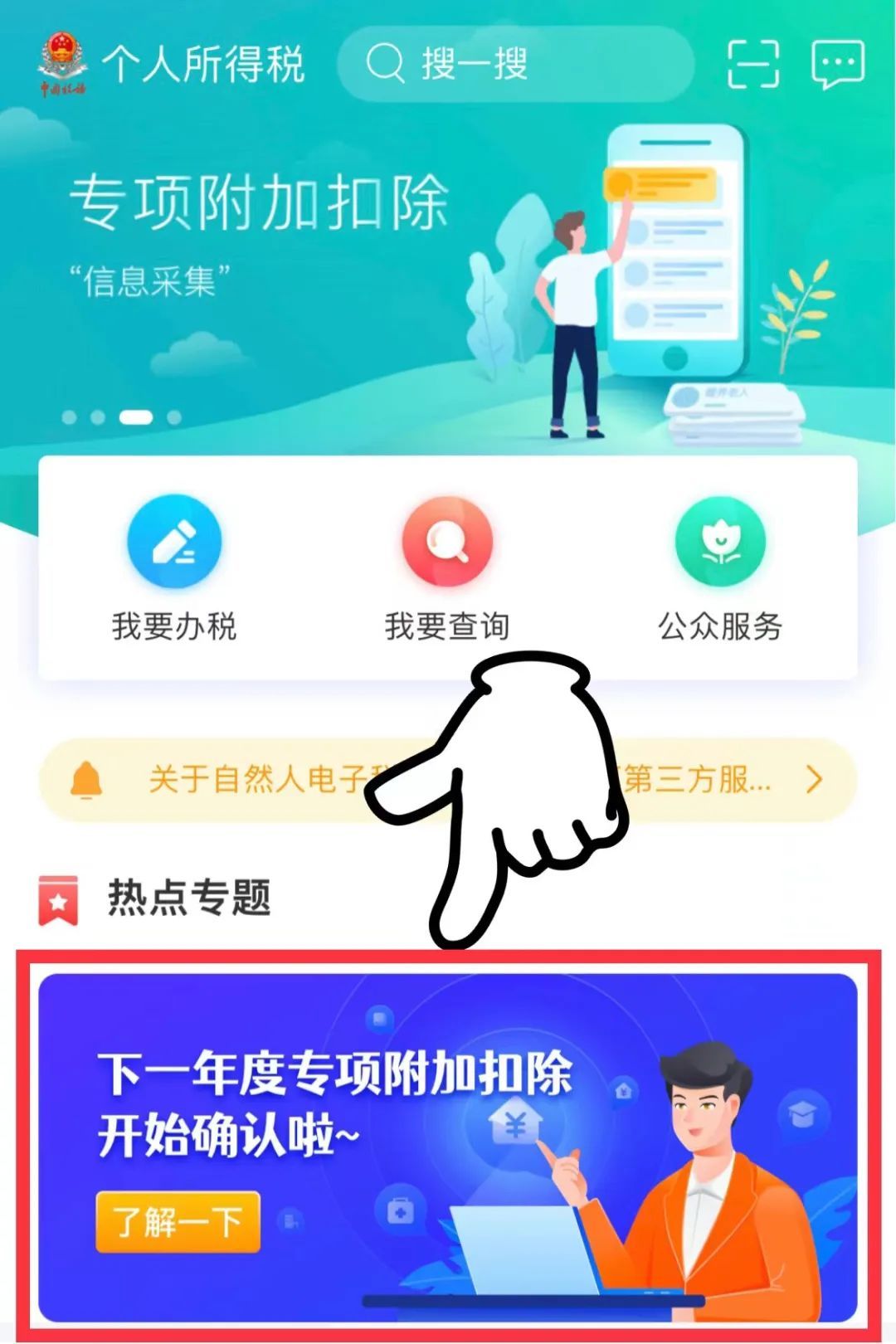 您通过个人所得税APP中【我要办税】模块,点击【专项附加扣除填报】栏目填写您符合的专项附加扣除项目。