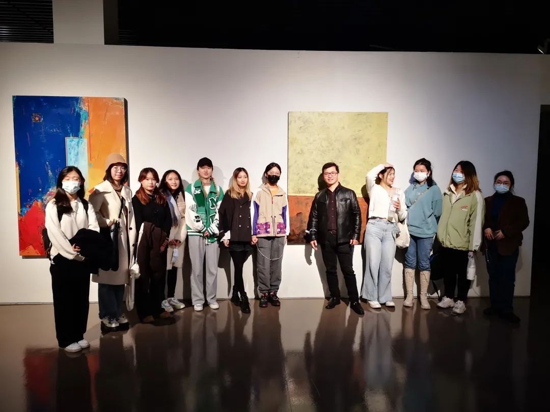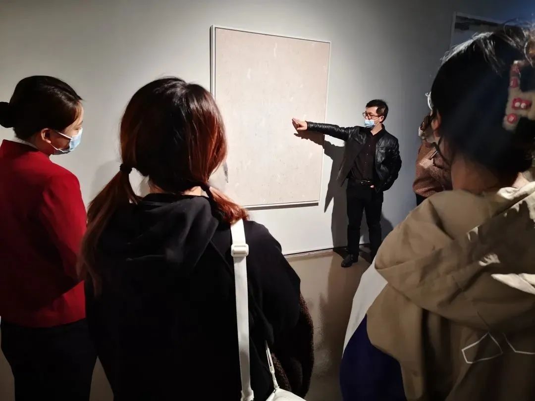 上海美协漆画艺委会委员、华东师范大学美术学院马俊营副教授,和他的30余位硕士及本科学生在展厅中开展教学成果分享沙龙,4位有作品入展的同学依次在自己的作品前,分享了各自的创作过程及心得体会。