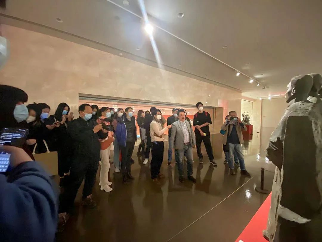 上海美协雕塑艺委会副主任杨冬白,引导上海戏剧学院继续教育学院的30余位学生,逐一分析了入展的雕塑作品。他强调,雕塑的形式非常多样化,而每一位艺术家在不同阶段的创作也会发生变化,因此建议同学们如果对某种形式或某一位作者感兴趣,可以从最具代表性或该作者最早期的作品着手了解。