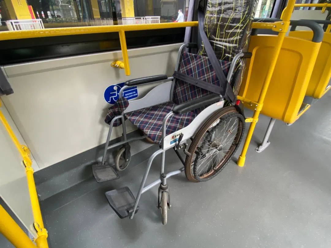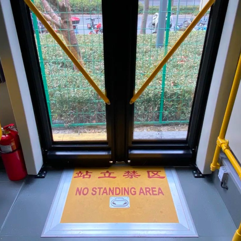 低地板纯电动公交车在车型设计上充分考虑乘客上下车的便捷性,采用低底盘设计,上下车门与公交站台持平,且中门处设置无障碍设施,车厢内设置轮椅区域,方便老年人及特殊人士上下车。