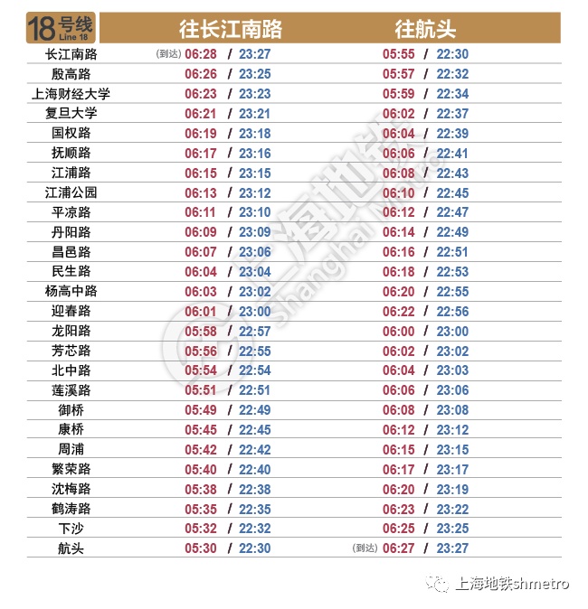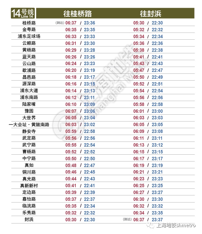 申通地铁集团说,今天(12月30日)起,上海地铁各线首末班车时刻表更新,加入并更新了14号线、18号线首末班车时间。常乘地铁的小伙伴们记得收藏哦!详见↓