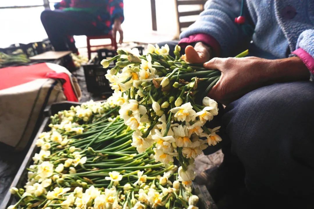 一大早,在向化镇百叶水仙花合作社仓库里,