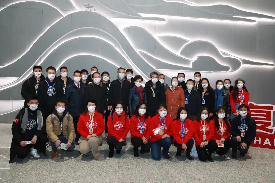 焦扬向“第一批复旦乘客”赠送复旦大学定制交通卡,并合影留念。常务副校长许征、副校长汪源源陪同慰问。