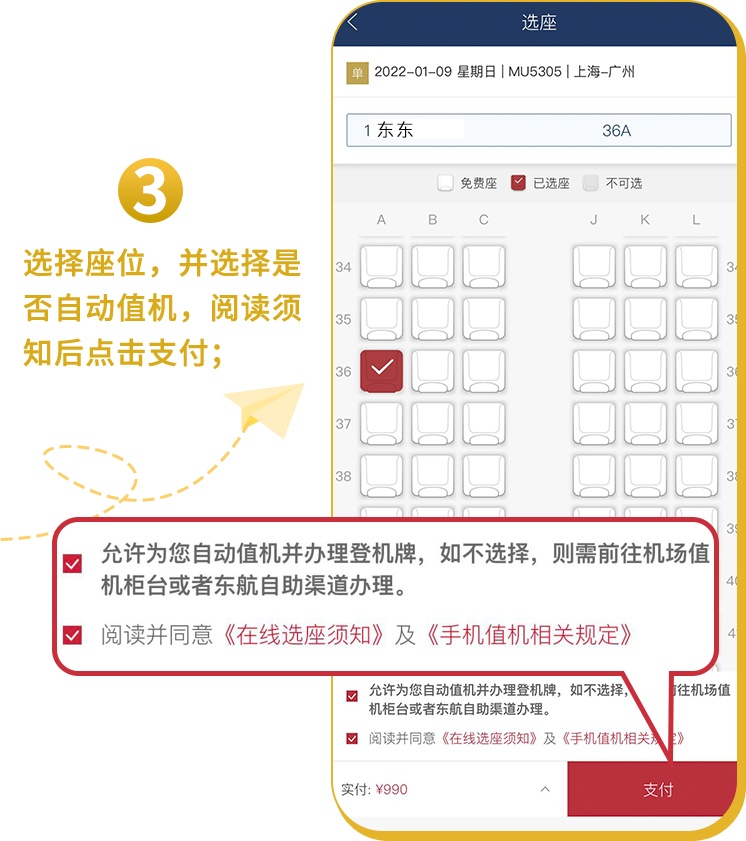 「购票选座值机流程」