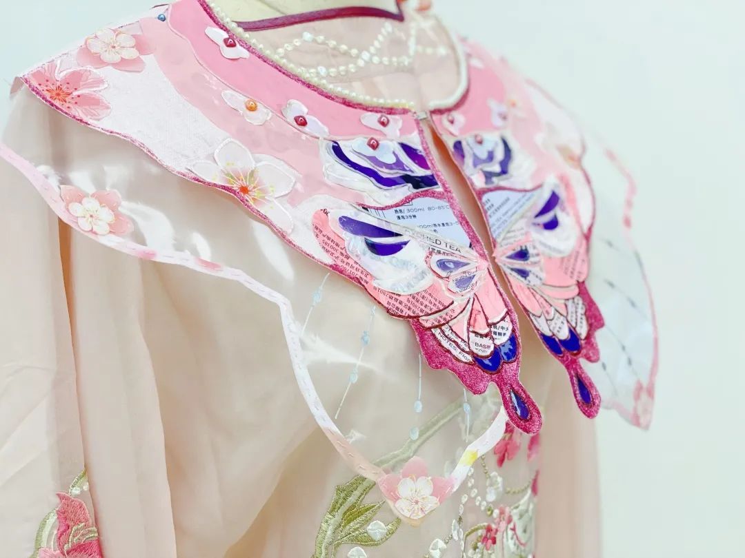 充满古风意韵的云间,上面的图形均由食品包装、服装外包装等拼贴而成,辅以珍珠装饰与立体勾线,体现传统云间“晔如雨后云霞映日,晴空散彩虹”的美感。