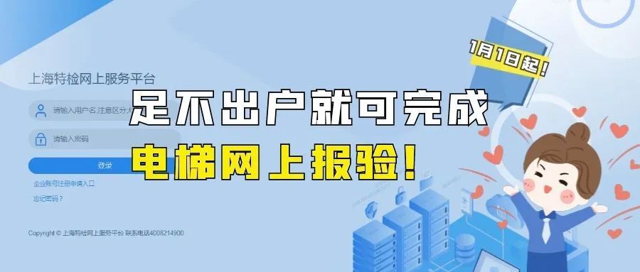 2022年1月1日起,上海推出电梯定期检验的网上报验服务。
