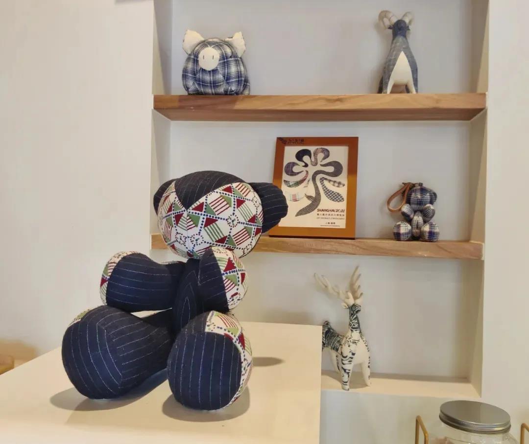 而在另一边,位于新河镇的“陌上舍”民宿别出心裁地将崇明土布文化融入了整体设计当中。这些看似“土气”的老物件与现代的装饰物相结合,衍生出土布艺术品,迸发出新的生命力。民宿中展示的土布玩偶、土布工艺品深受游客的青睐。