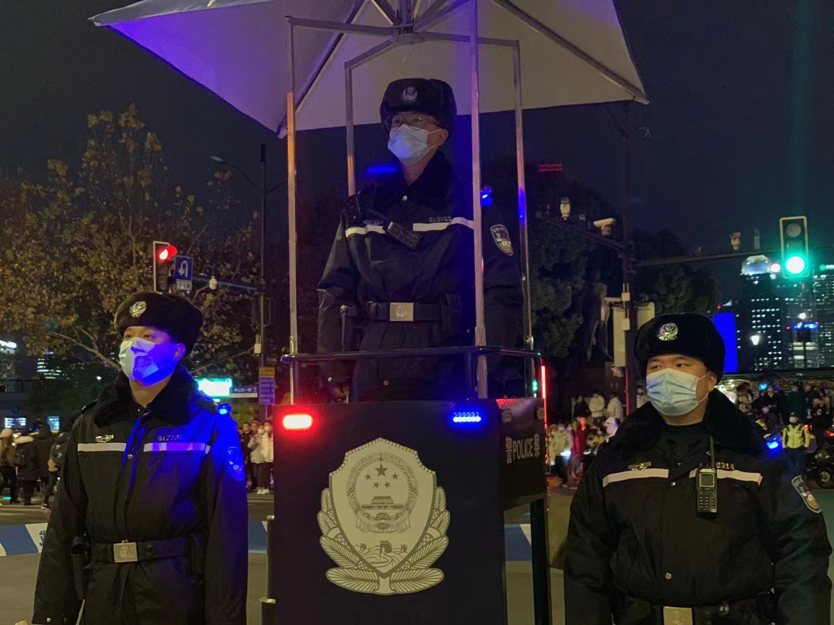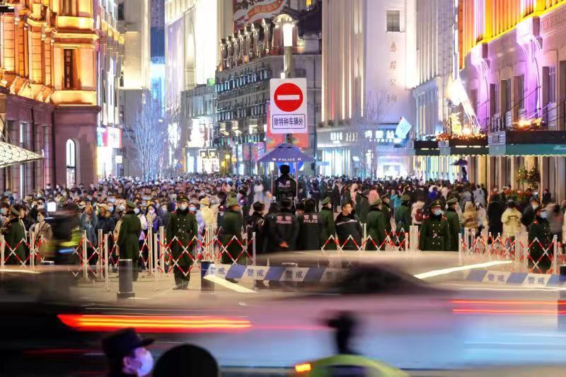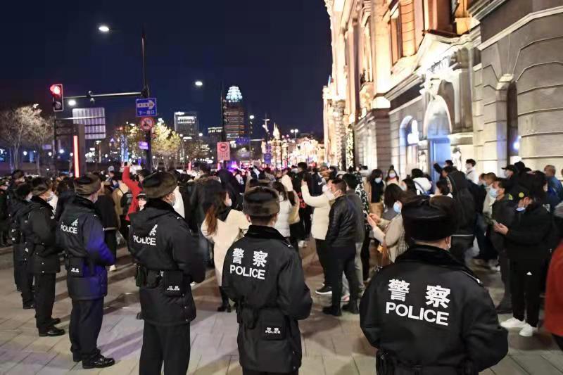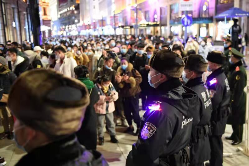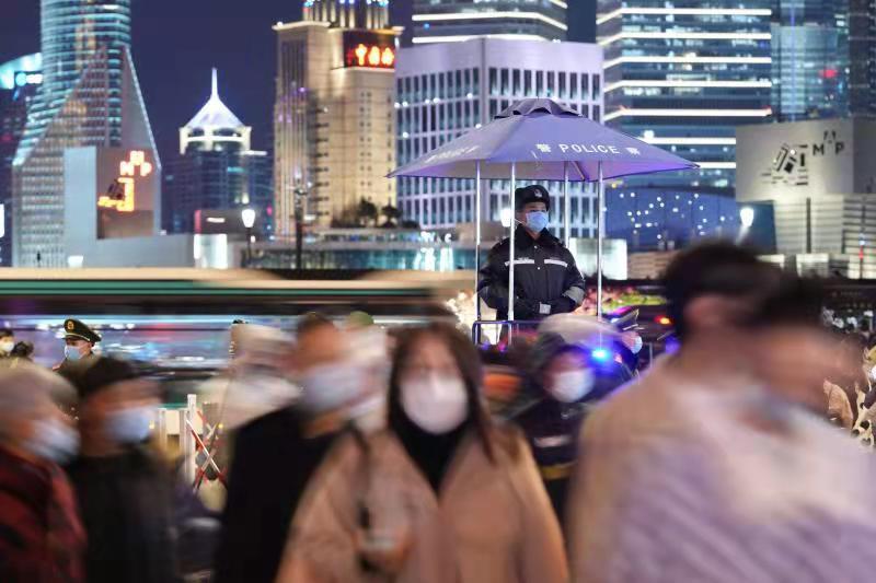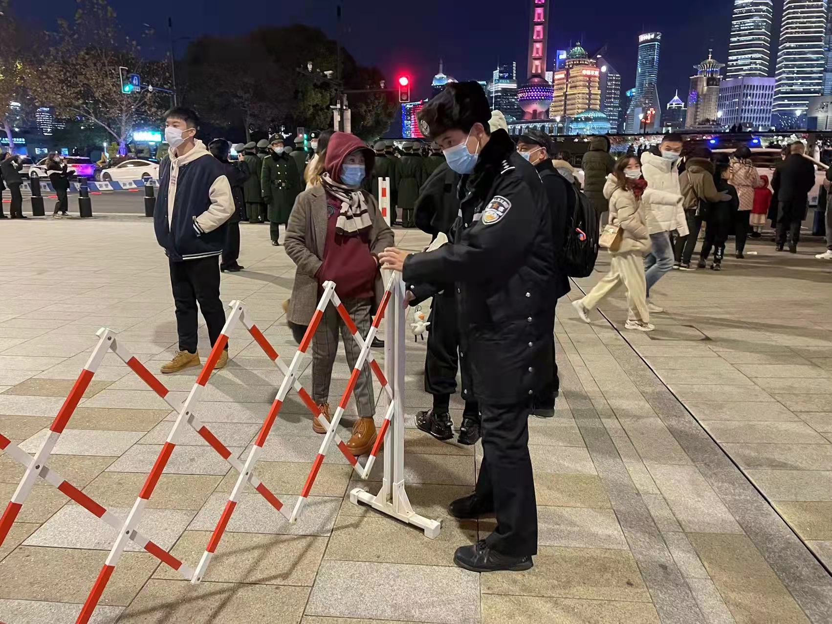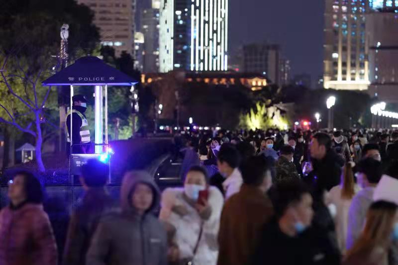 2021年12月31日跨年夜,为有效应对广大市民群众和游客自发集中观光游览形成的“大客流”情况,黄浦警方坚持把安全放在首要位置,全面扎实落实各项安全保卫措施,加强公共场所人员聚集安全管理,确保辖区平稳、有序。