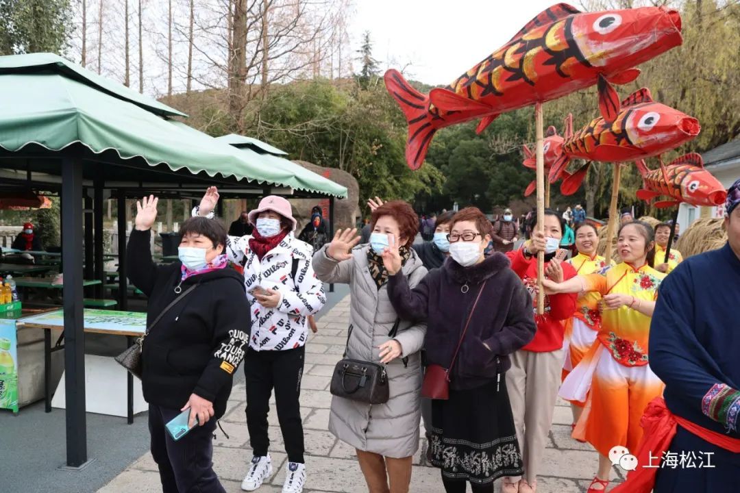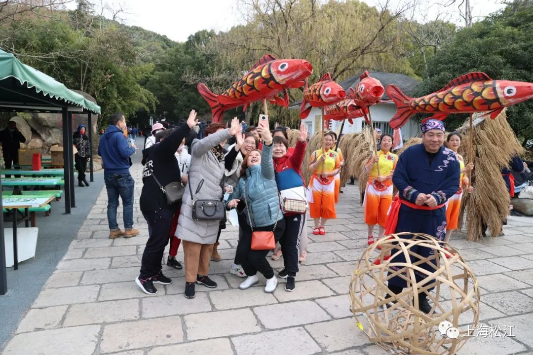 当天的佘山元旦登高活动还特别设置了新的环节,邀请非遗表演队、民俗达人等将非遗文化项目带到佘山,让游客了解和体验传统民俗文化。走入园区的游客,首先就被广场上的打莲厢表演吸引驻足。打莲厢又名“打雷响”,盛行于佘山镇、新浜镇等地,展现了当地百姓的耕作文化。舞者们衣着鲜艳、节奏感极强,一下子就让现场热闹起来。接着,舞草龙表演将气氛推向高潮,舞草龙在松江已传承近千年,人们通过舞动的草龙祈求风调雨顺。眼见草龙翻腾,似在浪里遨游,市民纷纷拿出手机拍照,孩子们则围在边上,期待着和威武的草龙合影。