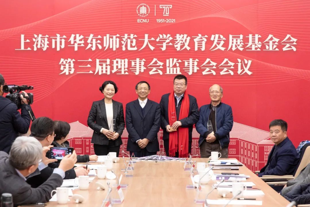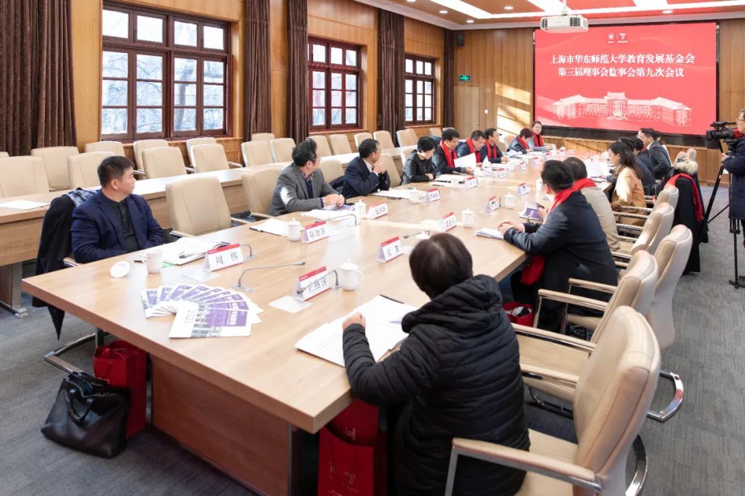 华东师范大学教育发展基金会第三届理事会监事会第九次会议在普陀校区举行。校党委书记、基金会理事长梅兵,校长、基金会顾问钱旭红院士,党委副书记、纪委书记、基金会监事长曹友谊,中国民主促进会上海市委员会专职副主委杨蓉,校经济委员会秘书长秦国利,产业研究院执行院长邢和祥,崇明研究院院长由文辉,巡察办副主任卢蓓蓉,上海四季教育集团董事长田培庆,上海紫江公益基金会秘书长陈琳,上海惠天然投资控股集团有限公司董事长程静,分众传媒执行董事兼首席运营官嵇海荣,绿地教育集团管委会常务副主任张永军,亚商集团副总裁张俊,能达(香港)控股有限公司董事局财务主管王燕萍,上海瀚英律师事务所主任律师周熙等参加会议。会议由上海市教委副主任、华东师大副校长、校基金会副理事长孙真荣主持。