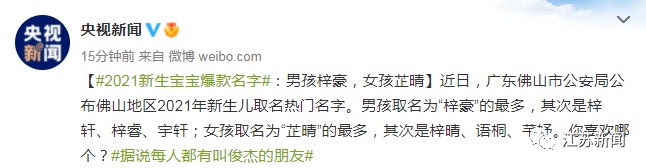 #2021新生宝宝爆款名字#的话题来了!