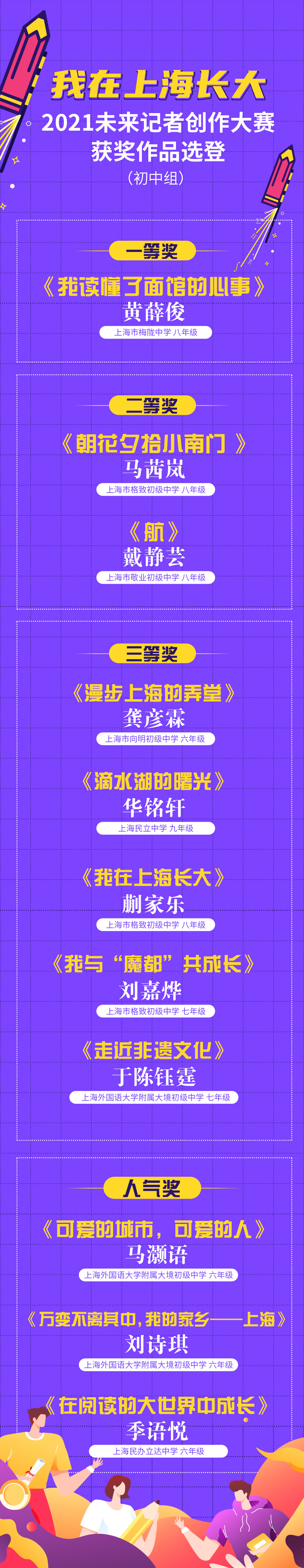 由黄浦区融媒体中心主办了四届的小学生写作大赛,在今年升级成《我在上海长大》——2021未来记者创作大赛。在作品中,孩子们用发现的眼睛和生动的笔触,记录真切的体验,描摹眼中的上海。上海黄浦将陆续刊登部分获奖作文,欢迎关注哦!
