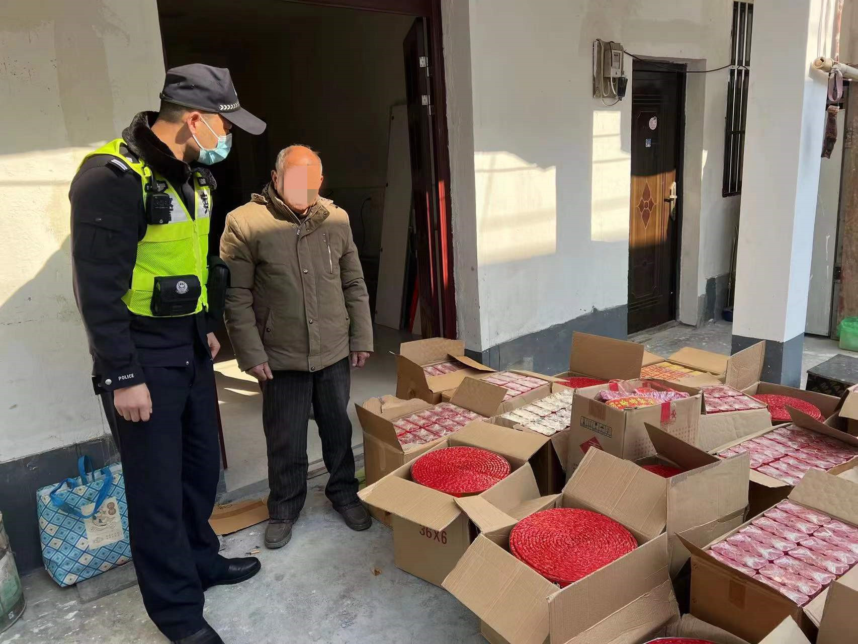 12月20日,民警发现五厍大街一无烟花爆竹经营资质的店铺内存在买卖烟花爆竹的情况,并于12月30日在曹某家中缴获了非法储存并用于售卖的烟花爆竹共15箱,包括7箱烟花、8箱鞭炮,民警当场对烟花爆竹进行了收缴,后将集中销毁。