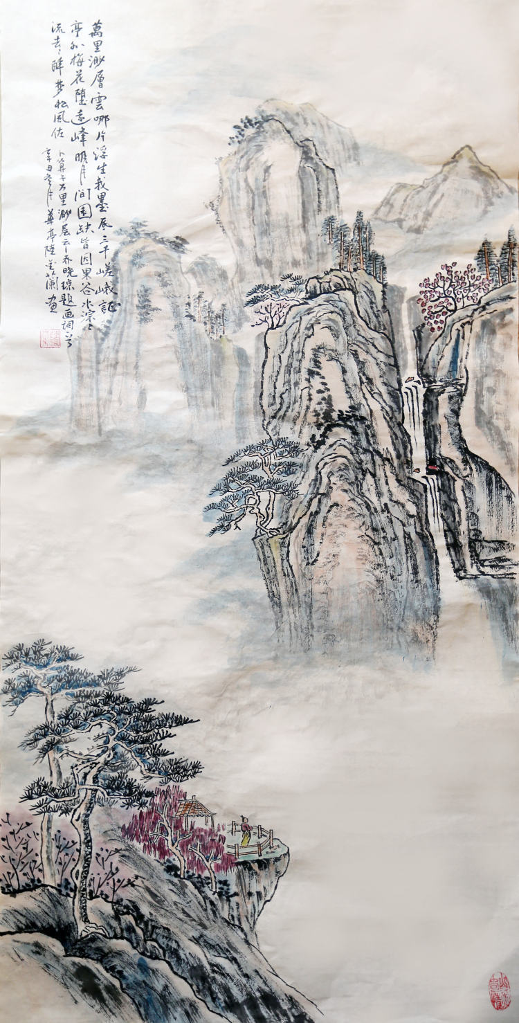 学习的念头虽兴起于一时,但学有所成并非一朝一夕可致。陆金兰和丈夫两人一同学习绘画和书法。“我一学就难以放下,想一直学下去。”陆金兰表示,学习激发了自己对文化艺术的热爱之情。多大的阻碍也抵不过“喜欢”二字,陆金兰日复一日,笔尖蘸墨绘山画水、练字写联,从基础技法的学习到浅摸门道、临摹原作,再到技法成熟、独立创作。除了以兴趣牵引为基石,她还有着自身独特的优势——二十九年的质量检验工作培养了她细致认真的品格,这对学习书法和绘画大有帮助。就这样保持着不竭的学习动力,陆金兰沉浸在书画的海洋中自得其乐。