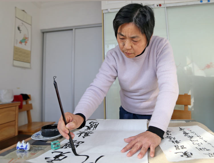几天前,家住中山东路白云新村的陆金兰收到了一封邀请函,她的两幅作品被评为“永丰街道廉政文化优秀作品”,并受邀于1月中下旬分别在王子彝宅和上海方塔园廉政教育基地展出。陆金兰今年64岁,曾是一名纺织厂质量检验工,退休前,她未曾想过,与纺织品打了多年交道的自己,有一天可以走上绘画、书法的艺术道路,并成为一名书法老师。
