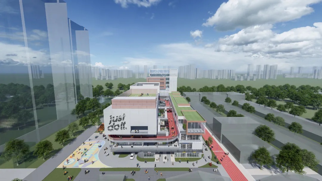 此次开工建设的盛邻城市体育创新综合体,落位于宝山、虹口、静安、杨浦四区交界的宝山“南大门”高境镇,用地面积约8000平方米,总建筑面积约3万平方米,特别规划设计高挑空体育场馆、空中跑道、架空通廊,是上海市首家运动主题MALL——“一座能跑的购物中心”,预计于2023年建成并投入使用。