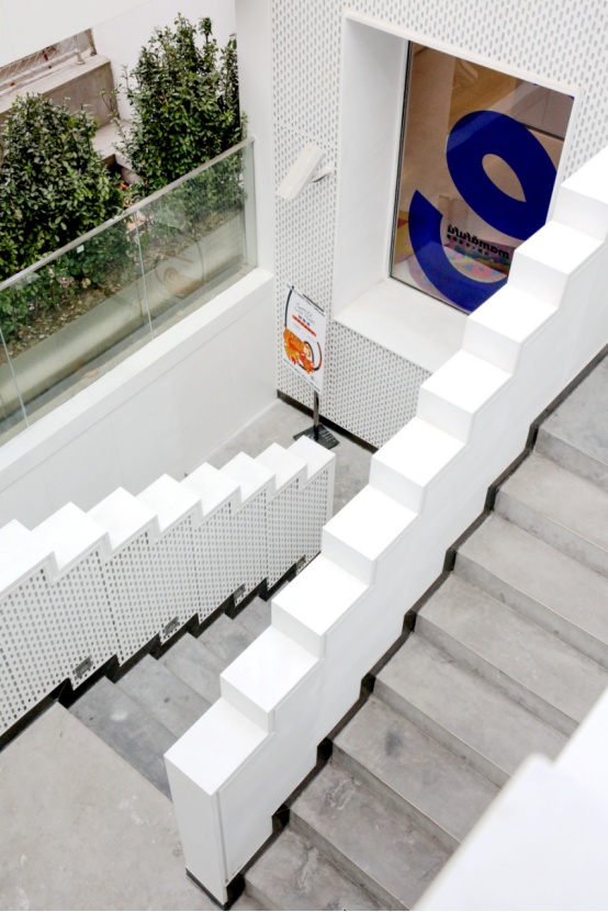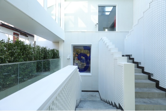 面对西康路的另一个进口,隐藏着纪念碑谷风格的白色阶梯,与绿植互相衬托,可以打造出“假装在欧洲”的最新系列。