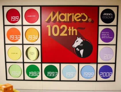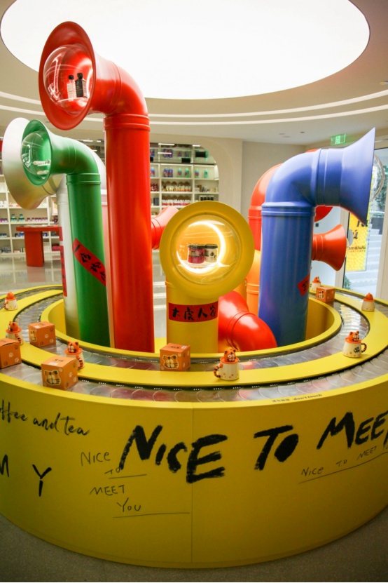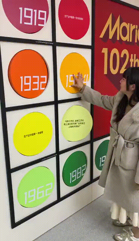 在马利趣味工厂主题区域,以工厂概念打造了马利色彩互动装置空间,一如马利的五彩颜料一样生动有趣。产品在“生产线”的传输带上缓缓转动,特别设置的“历史墙”上标注着百年马利的大事记。相邻的画材区域还可以买到马利最经典的画材和最新设计的联名款。仔细一看,还可以发现“虎头虎脑”的虎年马克杯!