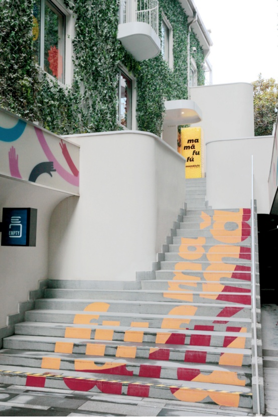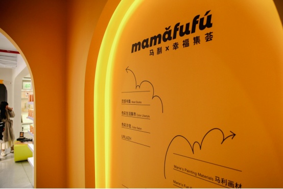 mamǎfufú超级百货约1000平方米,占据了M+马利位置最好的沿街二楼,涵盖了艺术展览、手工workshop、画材、图书、生活家居、艺术衍生、服装零售等多种业态内容,汇集了众多有色彩引领性的设计师品牌,并且会持续更新。