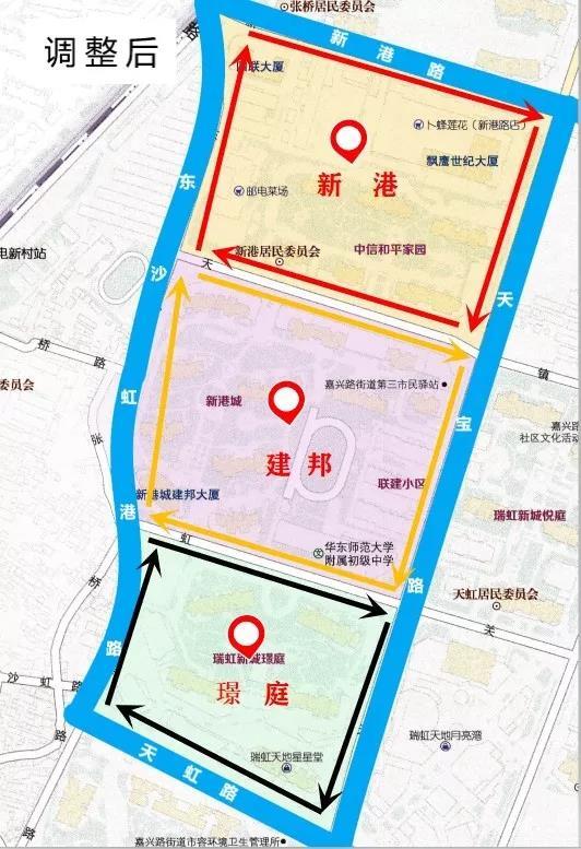 嘉兴路街道说,街道对新港居委会辖区范围进行调整,并新建璟庭、建邦两个居委会。调整后各居委会管辖范围、工作地点及联系方式公告如下↓