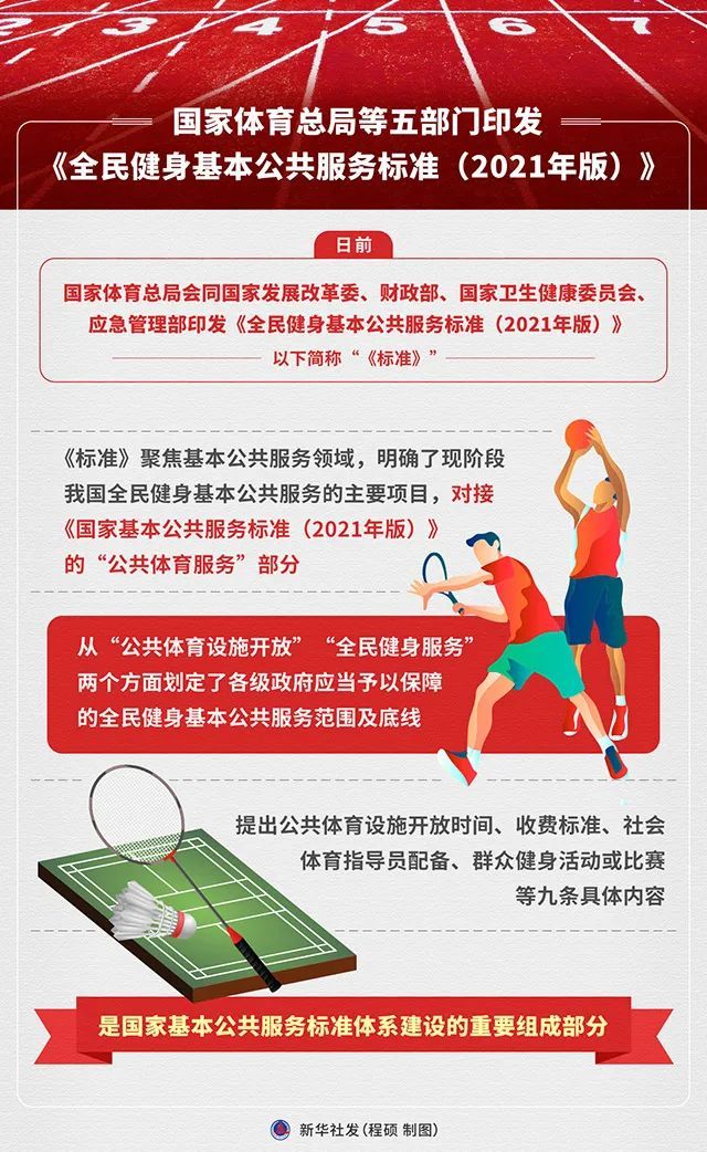 广场舞、太极拳、健身操……全民健身在队伍日益庞大的同时,也迈入了以标准化引领高质量发展的时代。日前,国家体育总局会同国家发展改革委、财政部、国家卫生健康委、应急管理部印发《全民健身基本公共服务标准(2021年版)》。