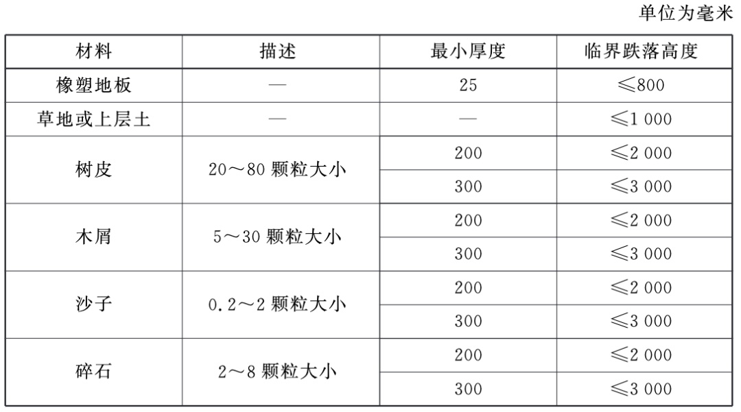 GB 19272-2011对常用缓冲材料的厚度和相应临界跌落高度的规定