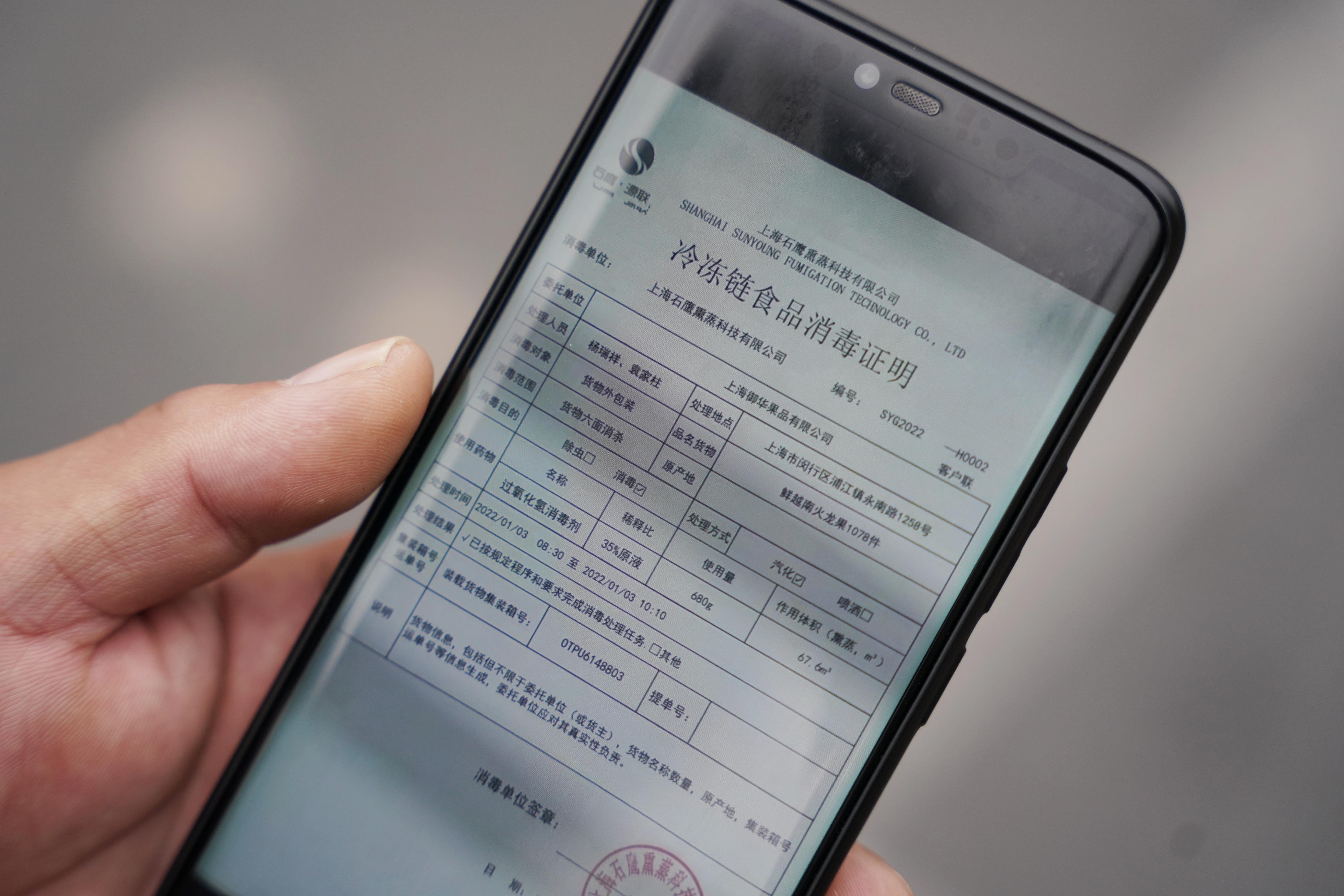 作为国内首个专业经营进口水果贸易的一级批发市场,辉展果蔬市场进口水果较为集中。其中,负责东南亚水果批发的御华果品公司就包含越南火龙果,在受到疫情影响后,公司负责人宋祖胜也是第一时间进行排查,配合市场进行消杀升级。“市场走海运要经过报关公司,报关公司再备案,备完案去消杀、做核酸报告,核酸报告如果查出来有阳性,就不会给你进市场了。” 上海御华果品有限公司负责人宋祖胜介绍。