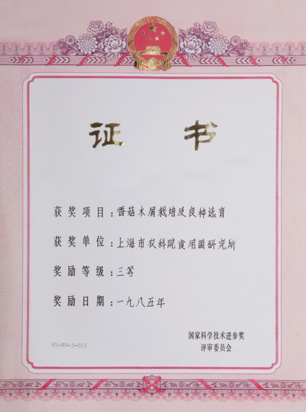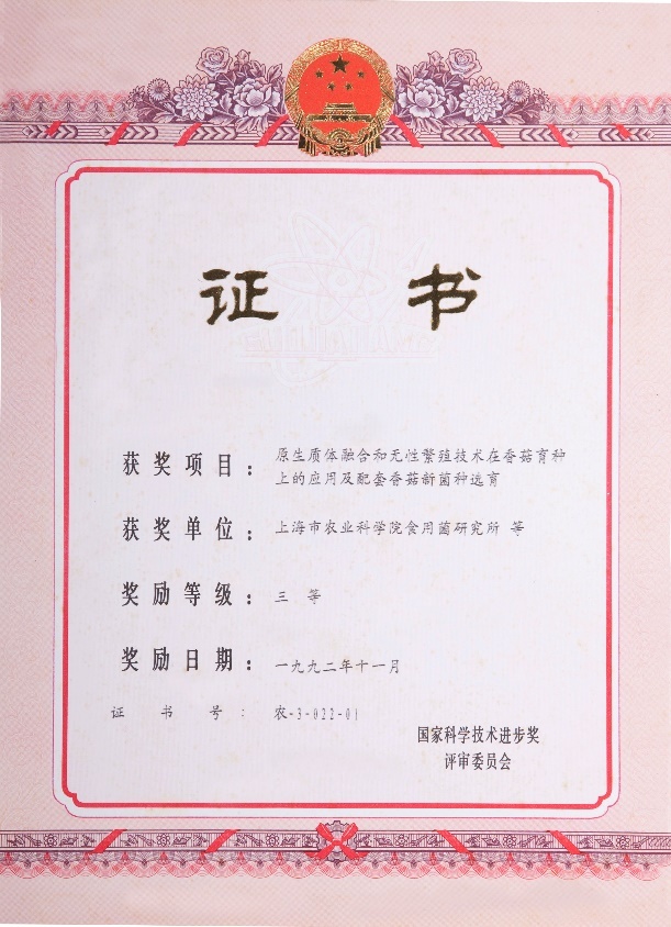 1985年,“香菇木屑栽培及良种选育”项目,获国家科学技术进步三等奖;1992年,“原生质体融合和无性繁殖技术在香菇育种上的应用及配套香菇新菌种选育” 获国家科学技术进步三等奖……
