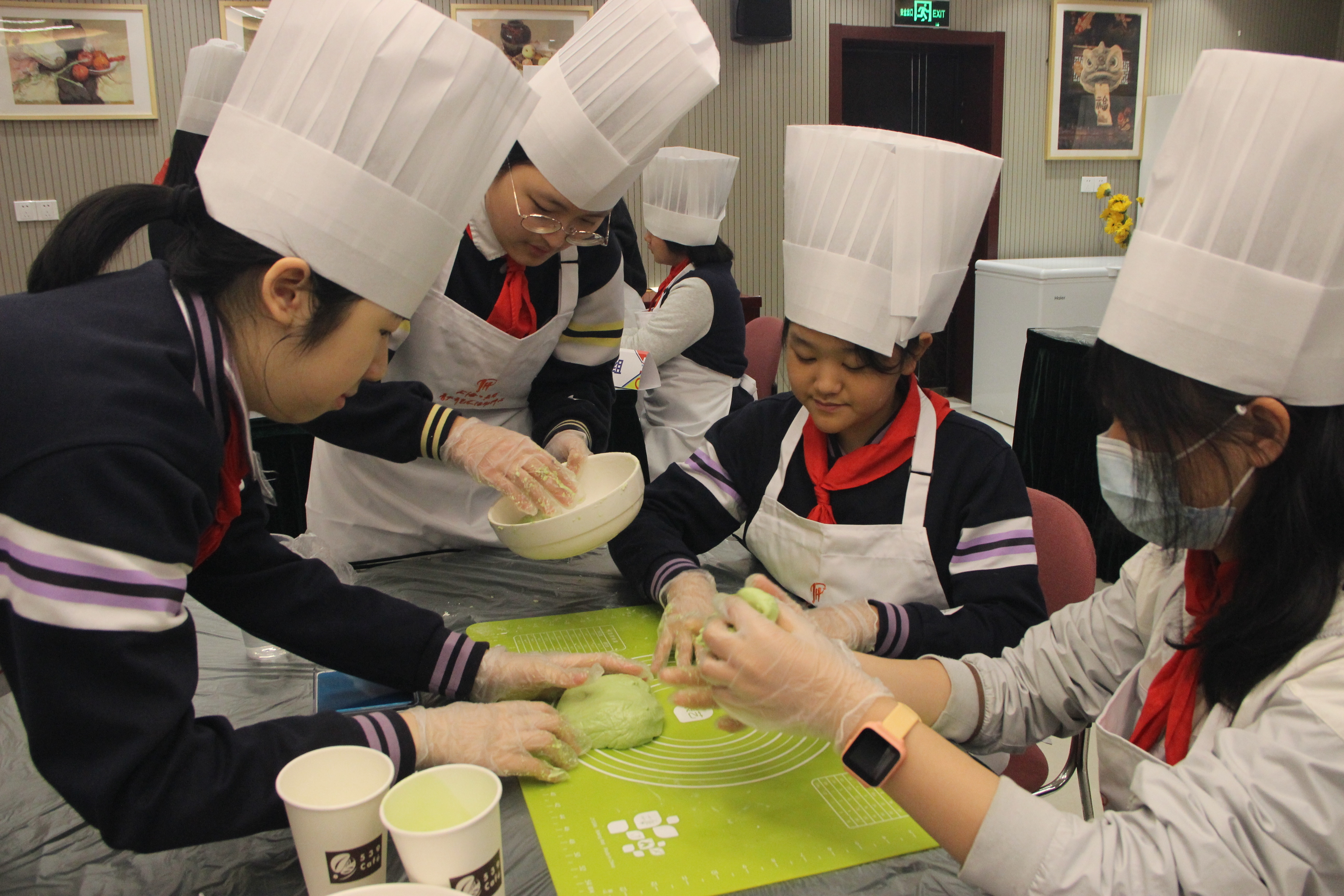 2021年清明节前夕,中心开展了“艾团青青传习俗——手工青团DIY”劳动教育主题活动,在专业老师的指导下,学生使用糯米粉、麦青汁等原料制作青团皮,红豆沙、咸蛋黄肉松制作馅料,包馅后蒸制、刷油、冷却、包装。中秋节前夕,中心又举行“月圆申城 情系中华——创意冰皮月饼制作”劳动教育主题活动,同学们和面、称重、压皮、包馅、按压,最后放进模具中定型。