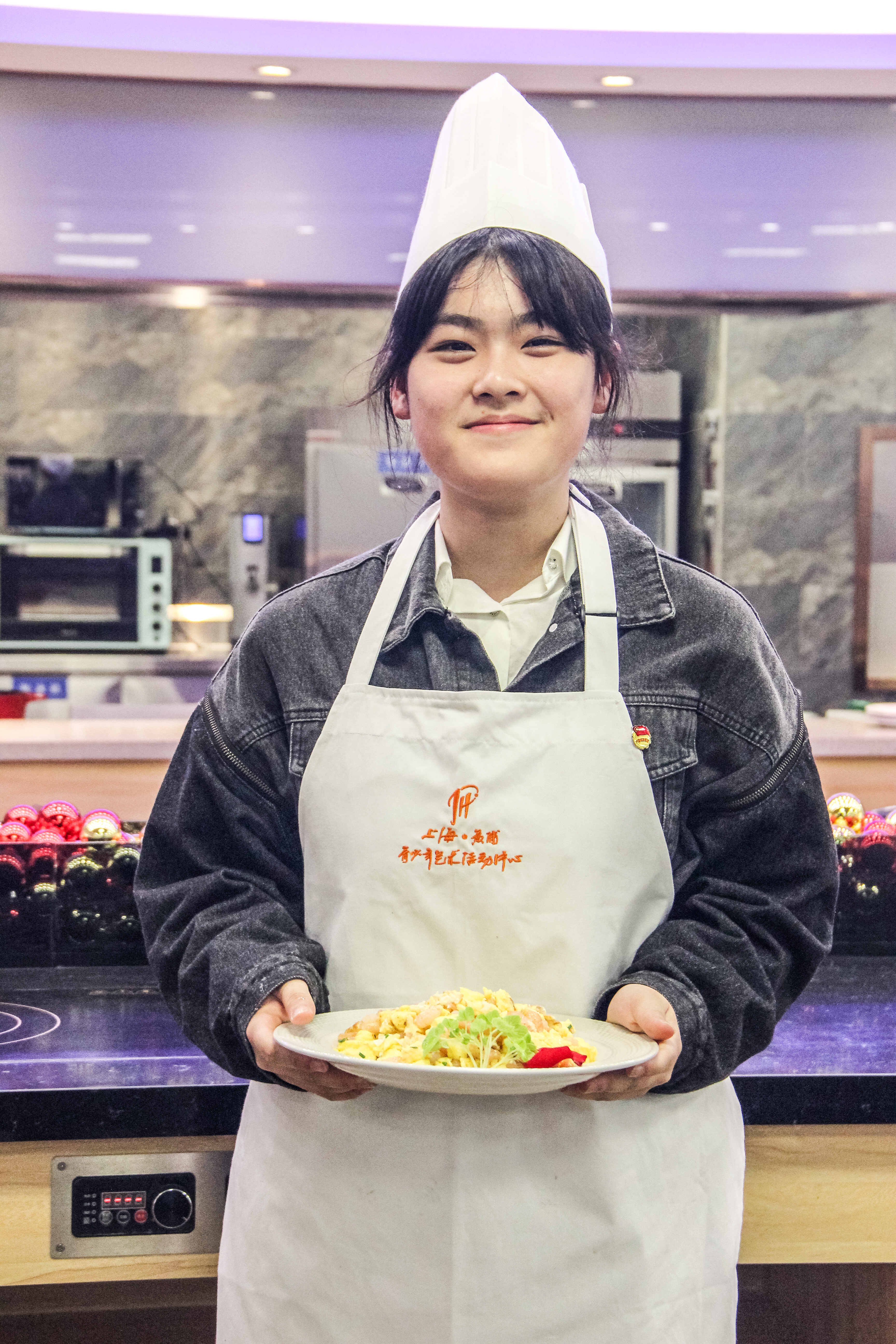 在充满烟火气的“创意烹饪味美佳”环节,同学们化身小小厨师,洗切、烹饪和摆盘,每位学生掌勺一道菜,最终呈现一桌集滑蛋虾仁、香菇菜心、酸菜鱼片、咖喱牛腩、罗宋汤等十余道菜肴的“创意团圆饭”。