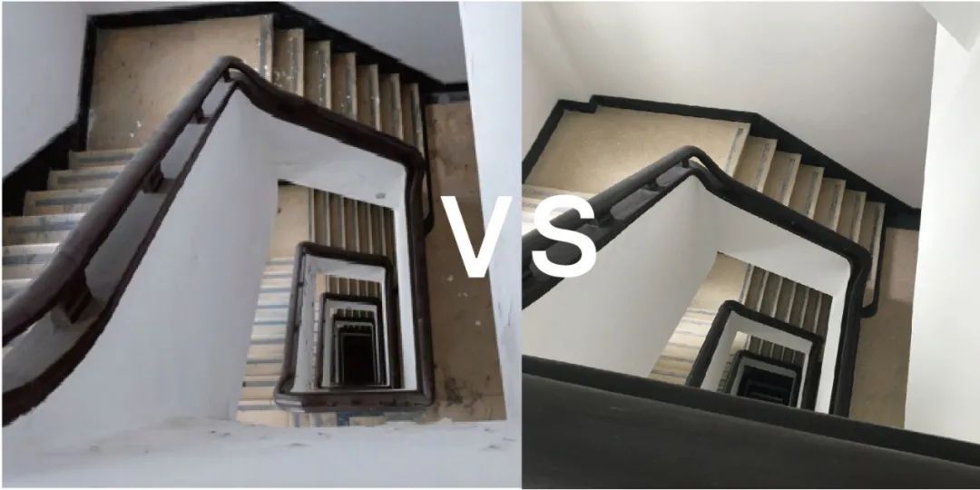 △楼梯间修复前后对比