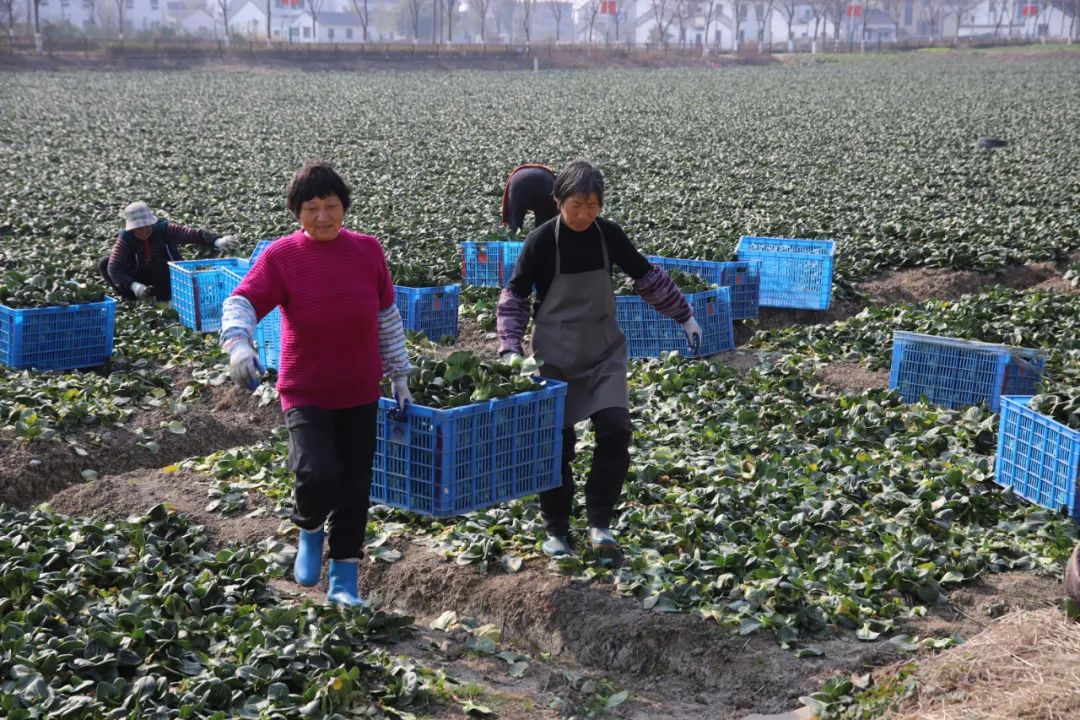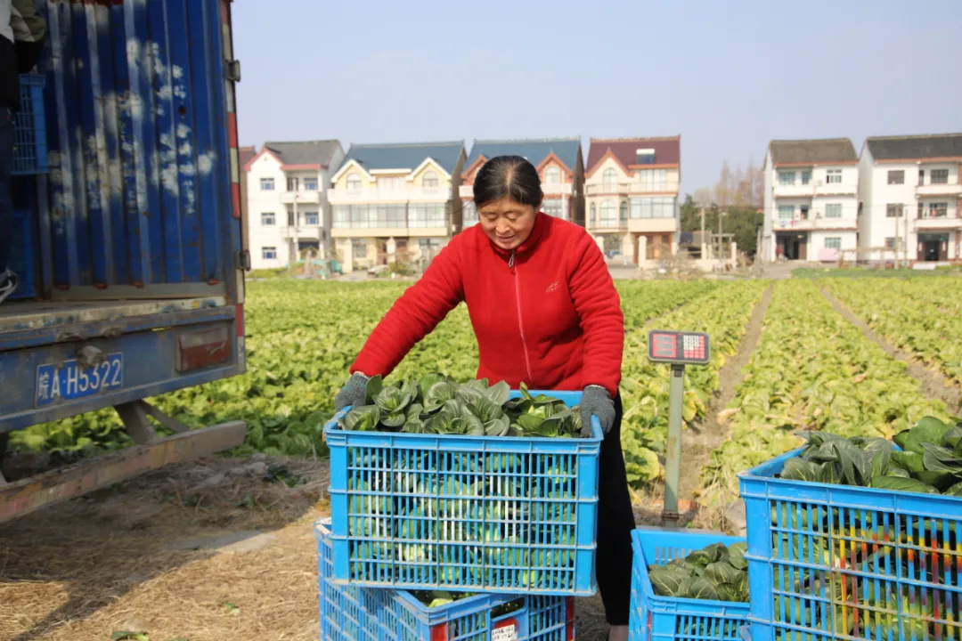 “今年青菜长势好,又是一个丰收年!”基地负责人孙女士说,“这两天菜地里比较忙,每天都是十来个工人一起摘菜,今天上午这么一车要装走3000多斤。现在是青菜最好吃的季节,不仅甜而且还糯,所以很受市场欢迎。”