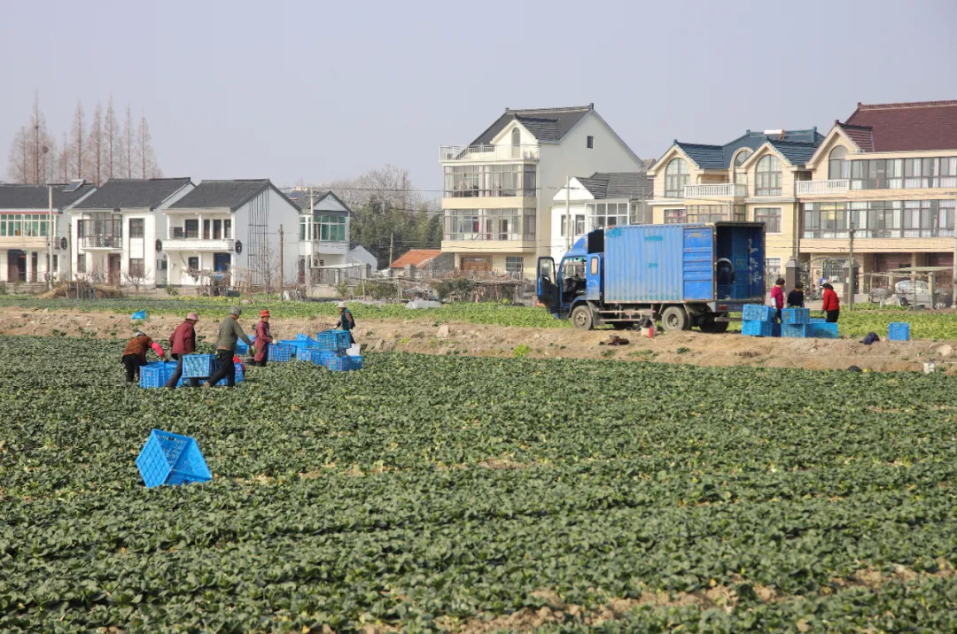 近日,记者在枫泾镇新义村集中居住点东侧看到,成片的青菜绿意盎然,长势喜人。十多名工作人员正忙着采摘、挑选、称重、装车。这些青菜将“搭乘”供应车,第一时间从田头送往市区农贸市场,成为市民餐桌上的美味佳肴。