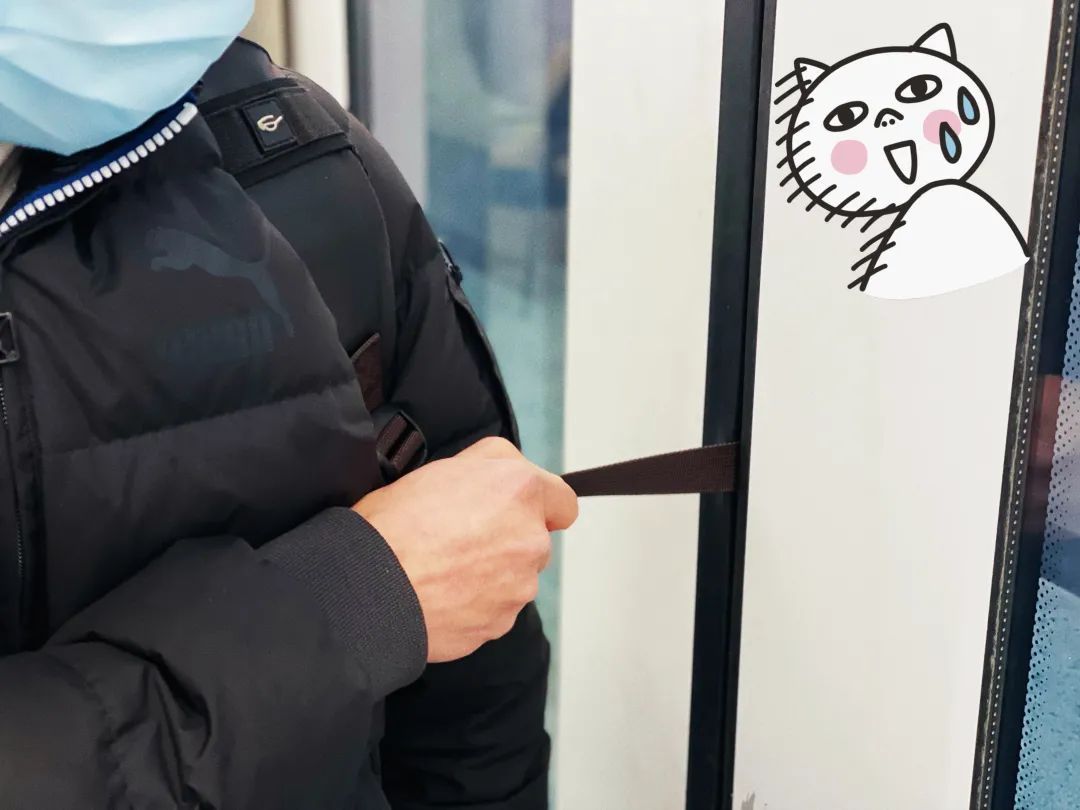 如不小心衣物被夹,切勿擅拉紧急拉手,延长处置时间。如在站台发生车门夹人夹物等情况,应及时求助车站工作人员。