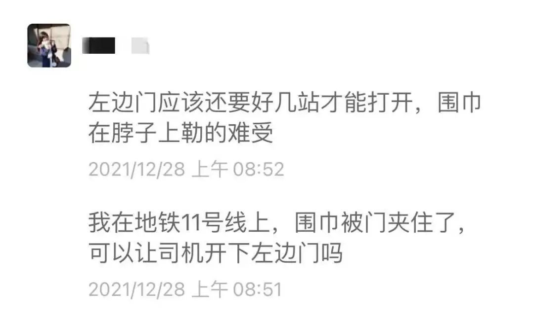 秋冬季节,乘客穿的衣服比较厚重,上车时要注意随身物品和衣物不要被夹住。