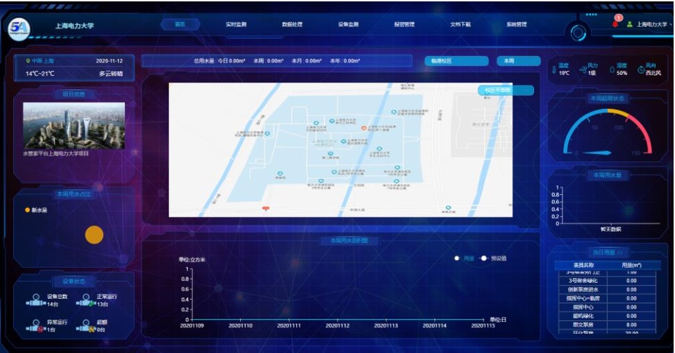 建立水管家监测系统。实时掌控水管网及各类用水设备、设施、仪器、仪表分布及运转状态,用水总量和各用水单元之间的定量关系,获取准确的实测数据,进而对学校用水现状进行合理化分析,制定出切实可行的技术、管理措施和规划。