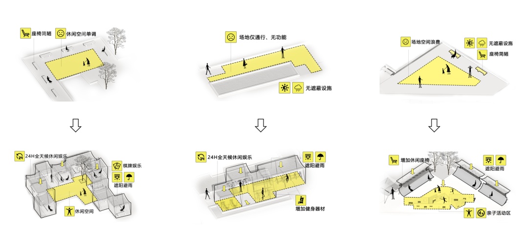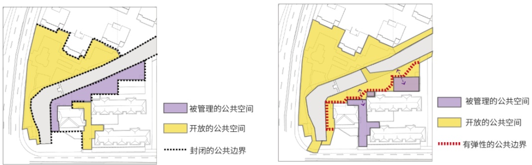 改造后:重塑公共空间的联系性与层级,重塑有弹性的边界(右)