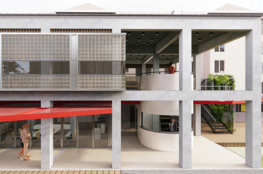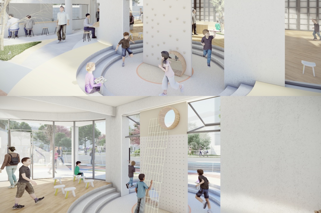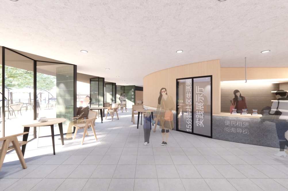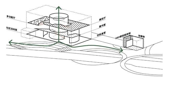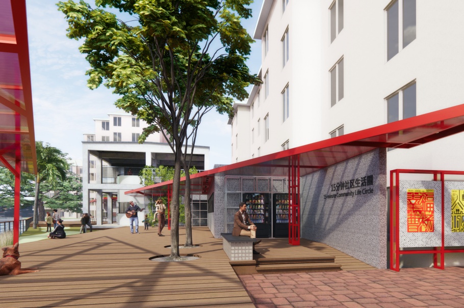 专家点评:此方案概念新颖,有意链接曹杨历史,设计形成开放共享、容纳多样的公共服务空间。