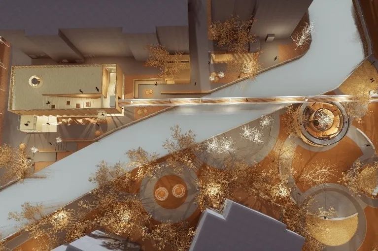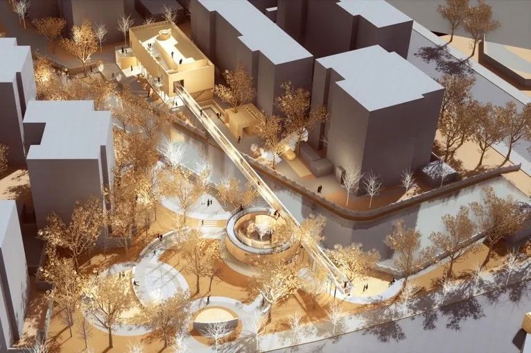 方案从树的生长痕迹中提取“年轮”概念,通过构建内部螺旋交通加外圈四层展墙来形成年轮记忆的轮溯。