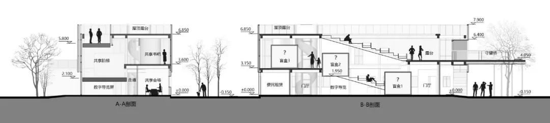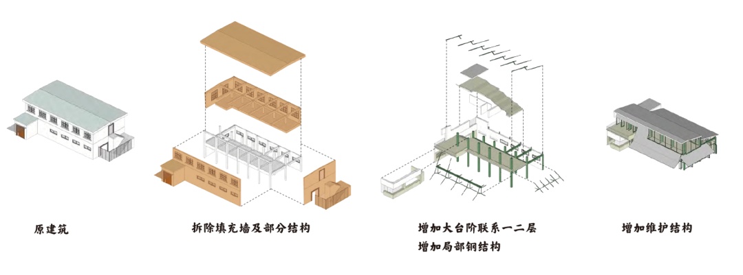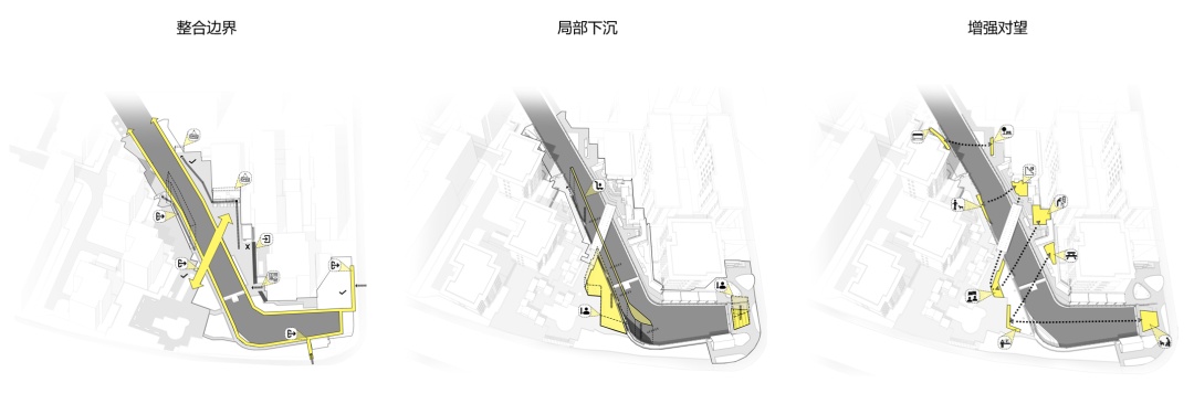 ▲新建立的边界系统与原址空间相互交织形成多层次开放的驿站边界。