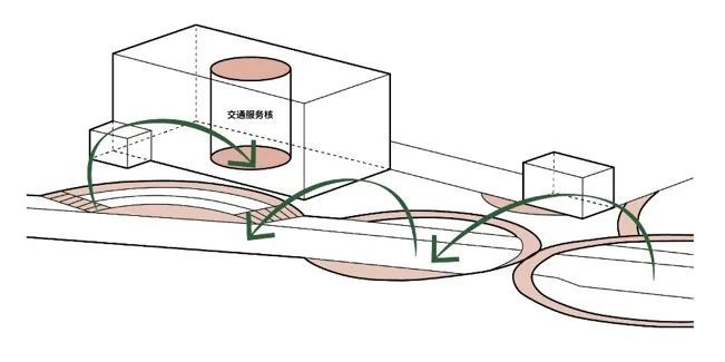 专家点评:方案将“圆”作为组织公共空间的基本元素,以相切的圆串联起一个个活力中心,相对应承载着不同的功能,满足居民的多样化需求。