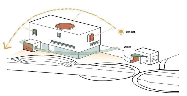 ▲首层灰空间完全消除内外边界,将外部庭院和室内贯通,人们在露台和视窗中远眺,在灰空间中散步或聚会,形成亲近自然的游走体验。