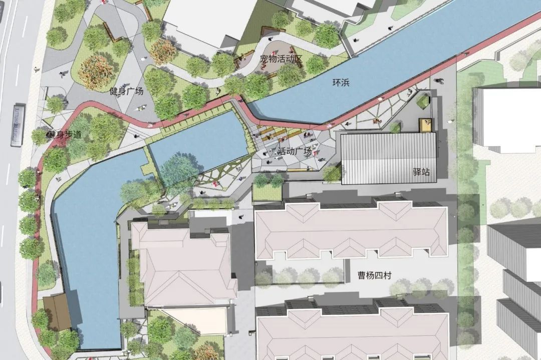按照“15分钟社区生活圈”相关规划要求,充分考虑建筑与环浜滨水空间、慢行步道、口袋公园的关系,通过微改造、微更新、微创意等设计手法,打造独具曹杨社区特色的节点型微空间,提升环浜及沿线街区整体环境品质。
