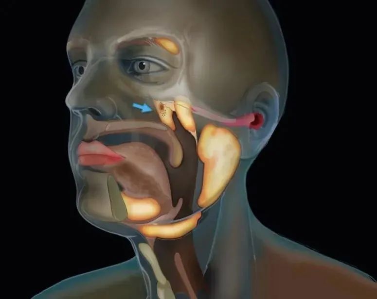 在以往的医学记载中,人类只有三个明显的唾液腺——舌下腺、颌下腺和腮腺,分别位于舌头下方、下颌下方和脸颊后部的下颌背面。除此之外,咽喉和口腔粘膜组织中或许也散布着上千个极小的唾液腺。它们分泌唾液,帮助我们咀嚼、吞咽和消化食物,并保持我们的口腔湿润及牙齿健康。而这次新发现的隆凸唾液腺位于鼻子后面一块被称为咽鼓管隆凸的软骨上,平均长度约1.5英寸(即3.9厘米)。